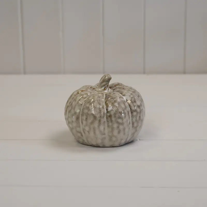 This medium beige mottle ceramic pumpkin decoration is perfect for autumn décor, serving as an attractive table display or centrepiece.