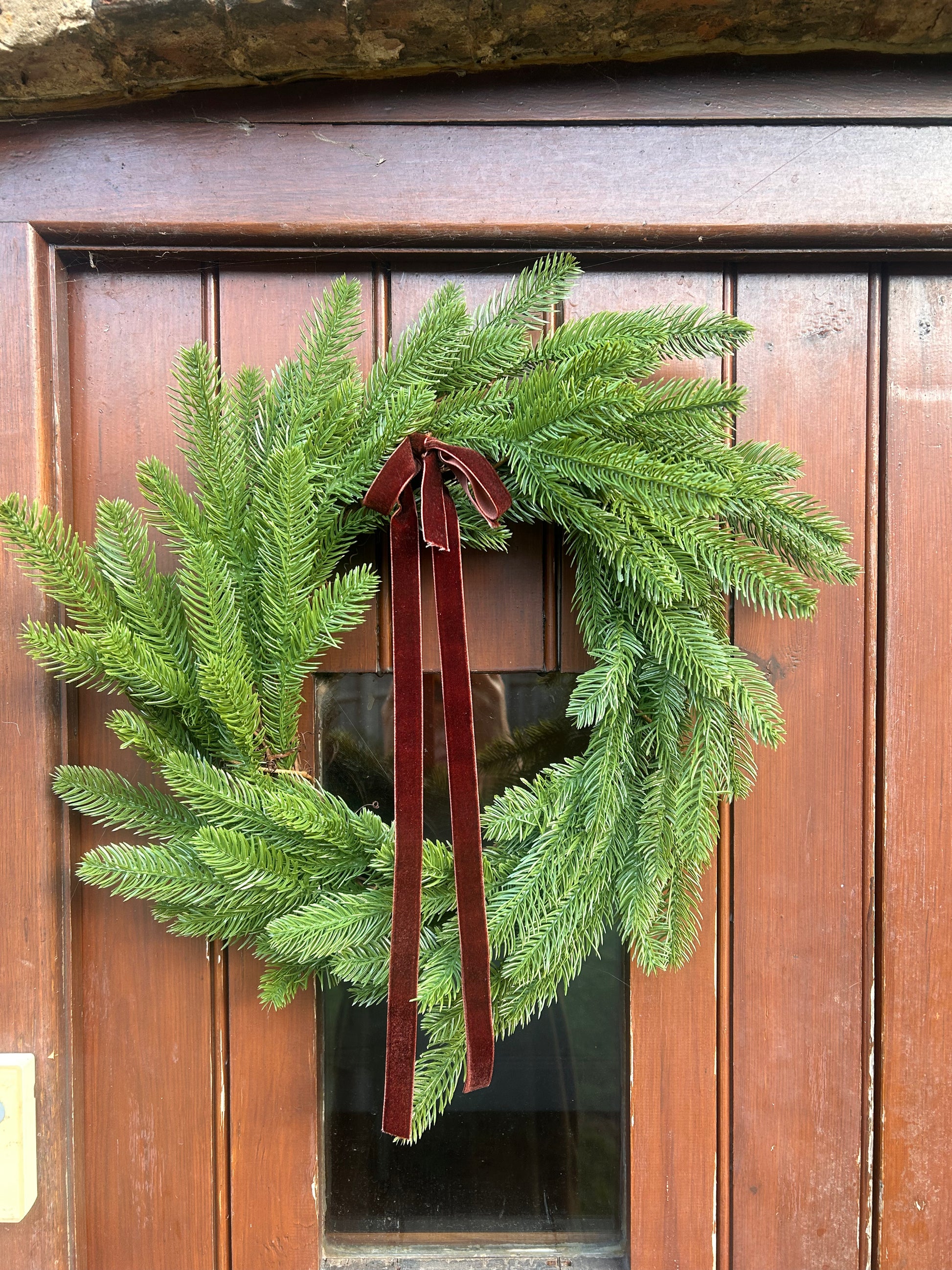 Christmas Faux Pine Wreath with Velvet Ribbon