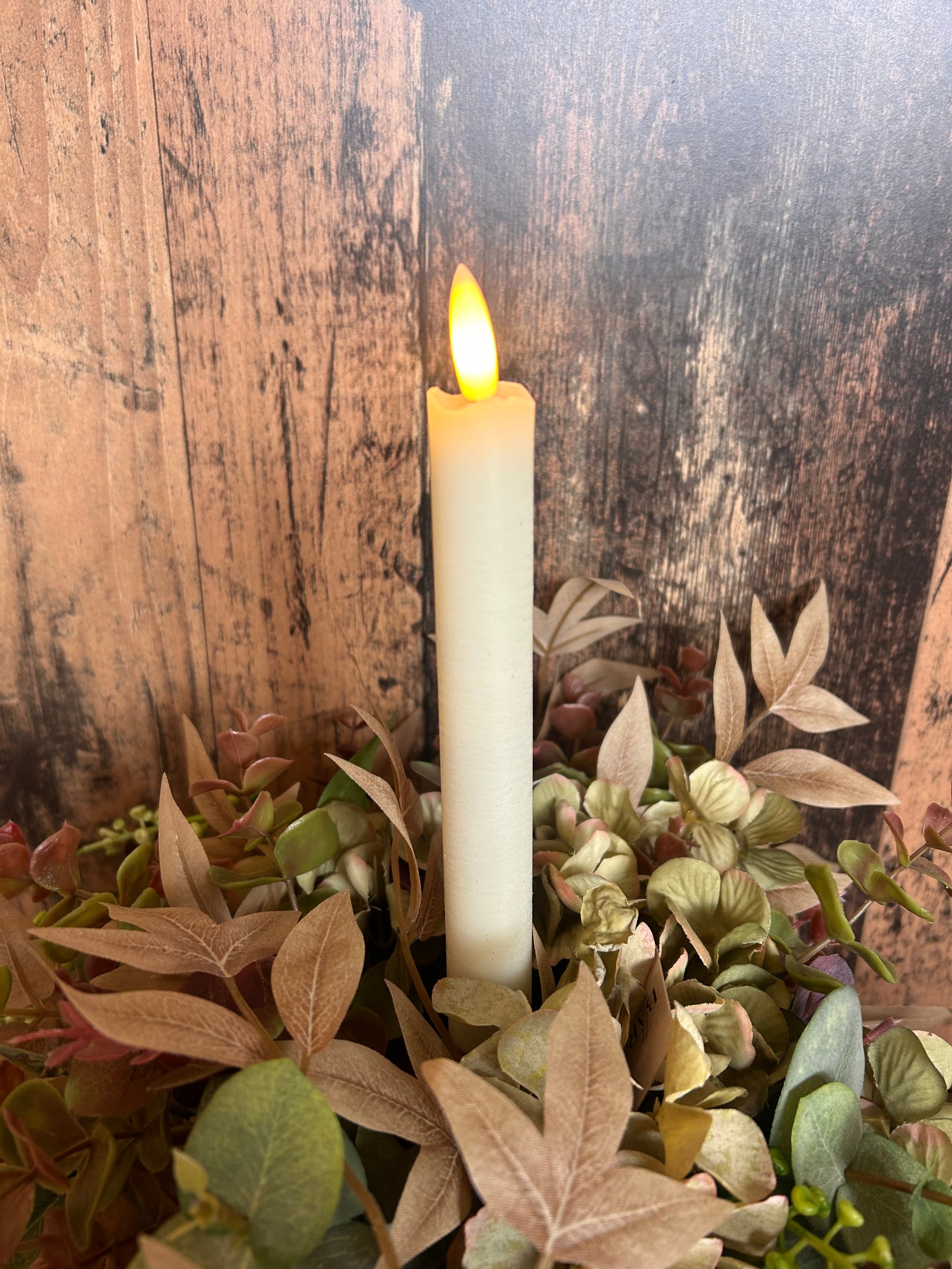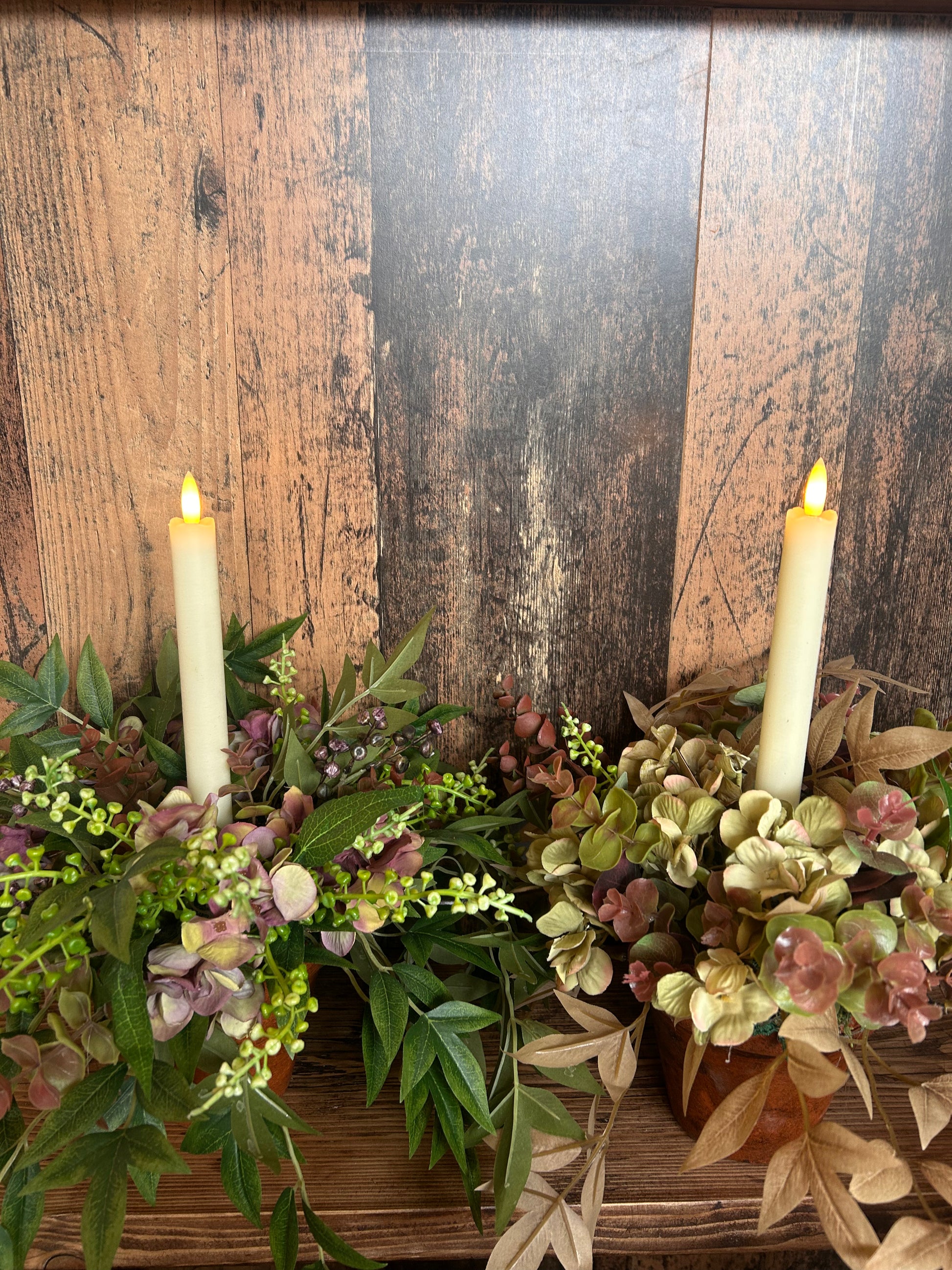 Our Faux Flower and Candle Centrepiece is a handcrafted faux floral arrangement designed for repeated use.
