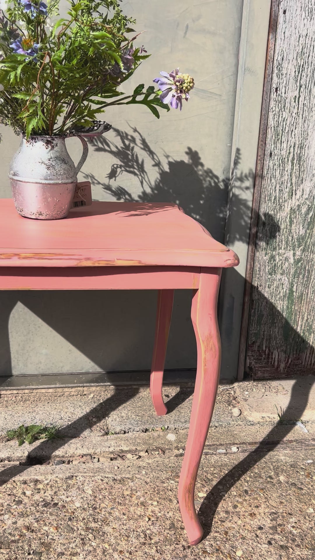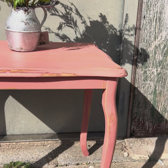 This solid wood table has been carefully refurbished and hand painted with Annie Sloan’s Scandinavian Pink.