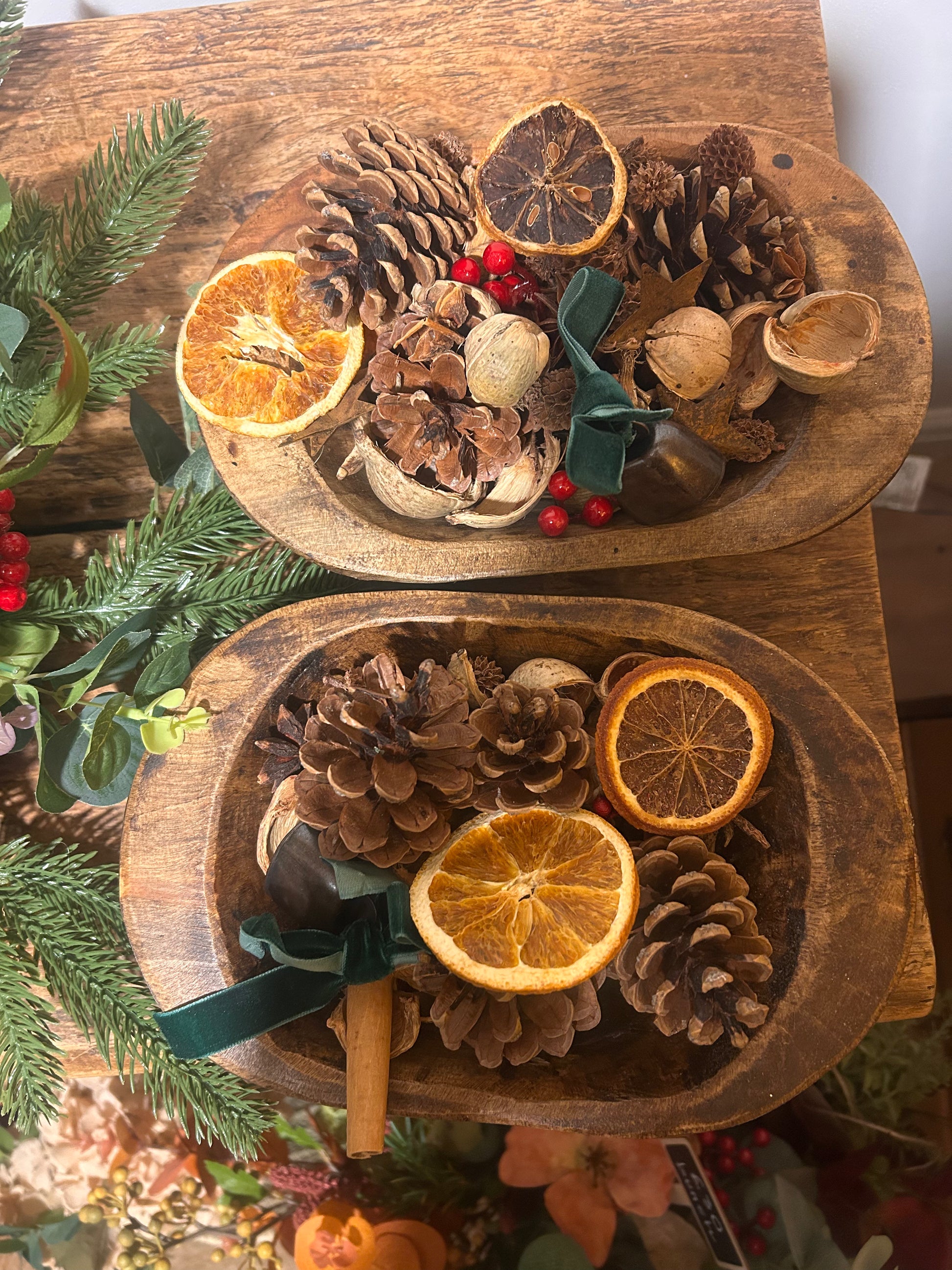 Wooden Dough Bowl Festive Potpourri-Small